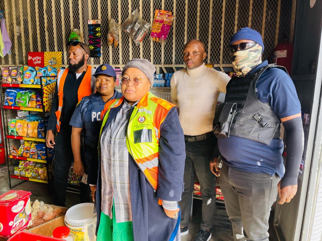 Induna yase-Mkhobosa ku-Ward 16 ngaphansi kukamasipala uMhlathuze, uNkosikhona Mkhize, ihambisana namaphoyisa bavakashele izitolo ezingama zabokufika bengalidelwe.