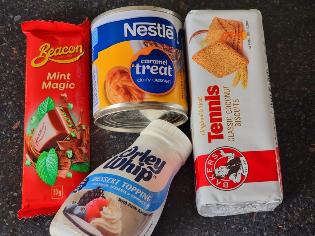 The four ingredients you need to make a Peppermint crisp tart. Image: Supplied
